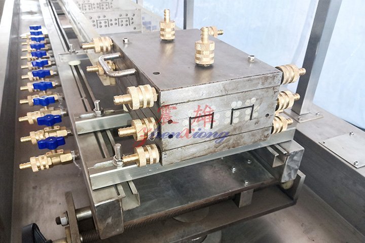 ●木塑生產(chǎn)設(shè)備切割機(jī)采用氣動控制,使用夾具與合金刀片,保證木塑型材的長度和切口的平整度。
